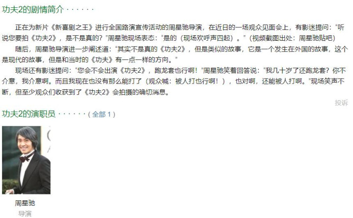还有,在网上有消息称,周星驰还会担任《功夫2》的主演,继续饰演星星仔这个角色。