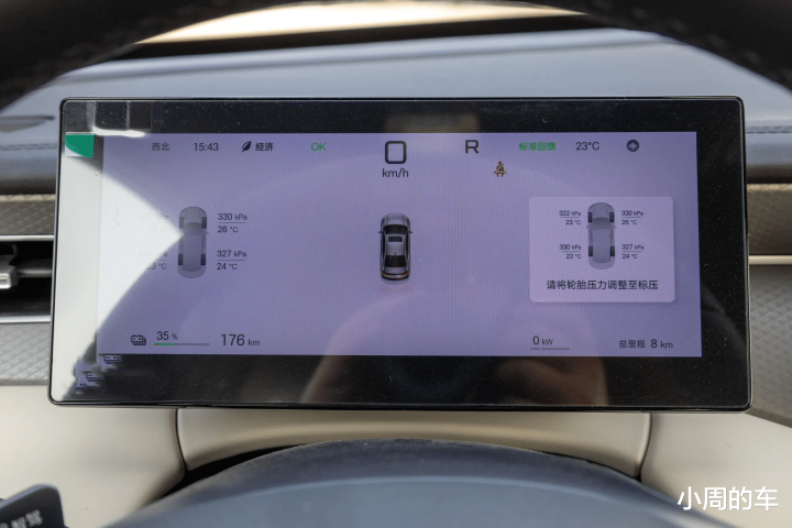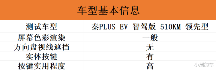 先说下坐进车内的直观感受,从色彩渲染上来讲,秦PLUS EV的液晶仪表和中控屏的显示效果算是中规中矩,不过,各种常用的行驶信息都可以在液晶仪表盘上得到体现,得益于比亚迪多年的造车经验,方向盘对液晶仪表的遮挡几乎可以忽略不计。